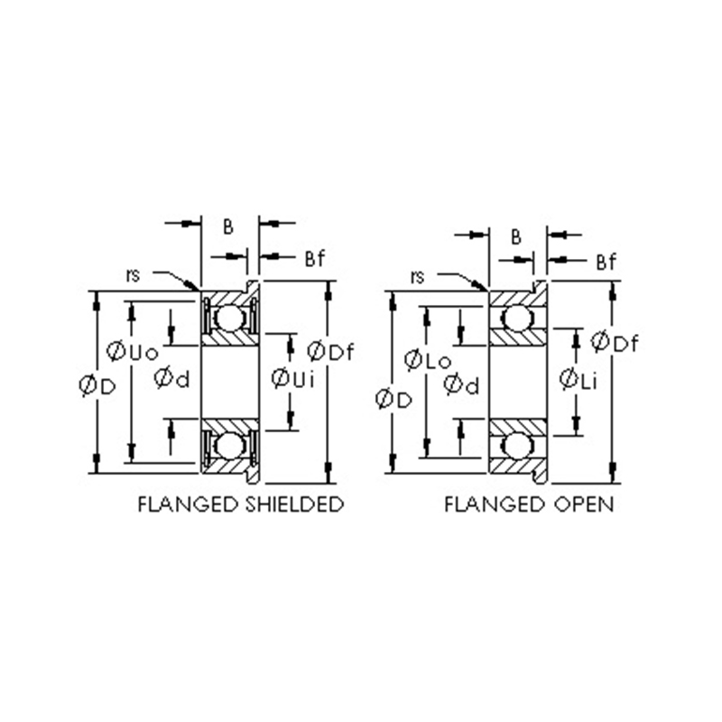 | MF128 | แบริ่งลูกบอลหน้าแปลน | 8 | 12 | 2.5 | 13.2 | 0.6 | 462 | 219 |